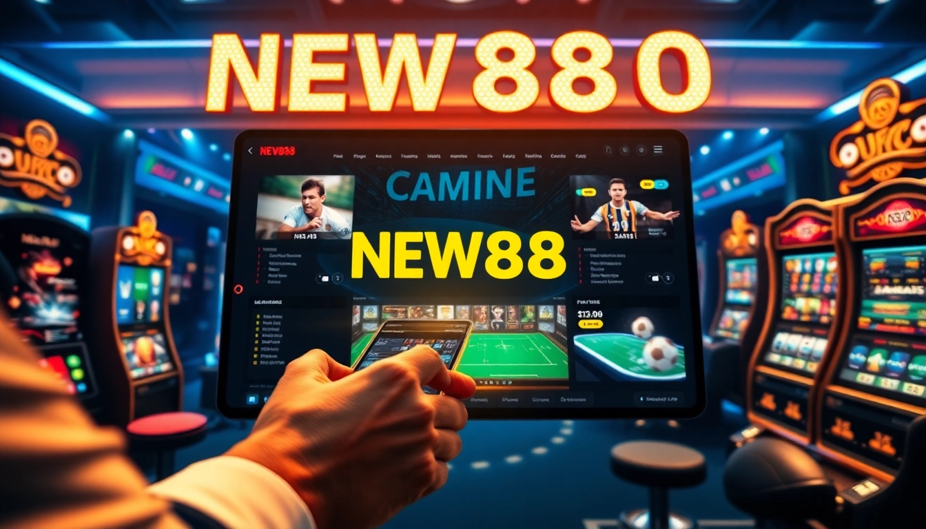 Engaging scene of online betting on new88go.com, showcasing diverse games and a luxury interface.
